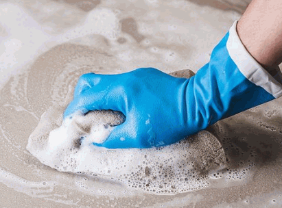 Pay attention to any tough stains or spots by using a soft brush and a mild detergent solution. Scrub gently in round movements until the stains are gone, then rinse with clean water.