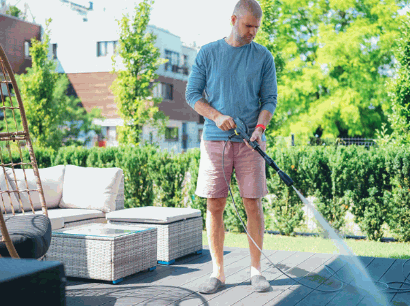 When opting for a DIY approach, start by clearing the patio of any furniture or obstacles. Next, ensure that any delicate plants nearby are protected from the pressure washer’s force.